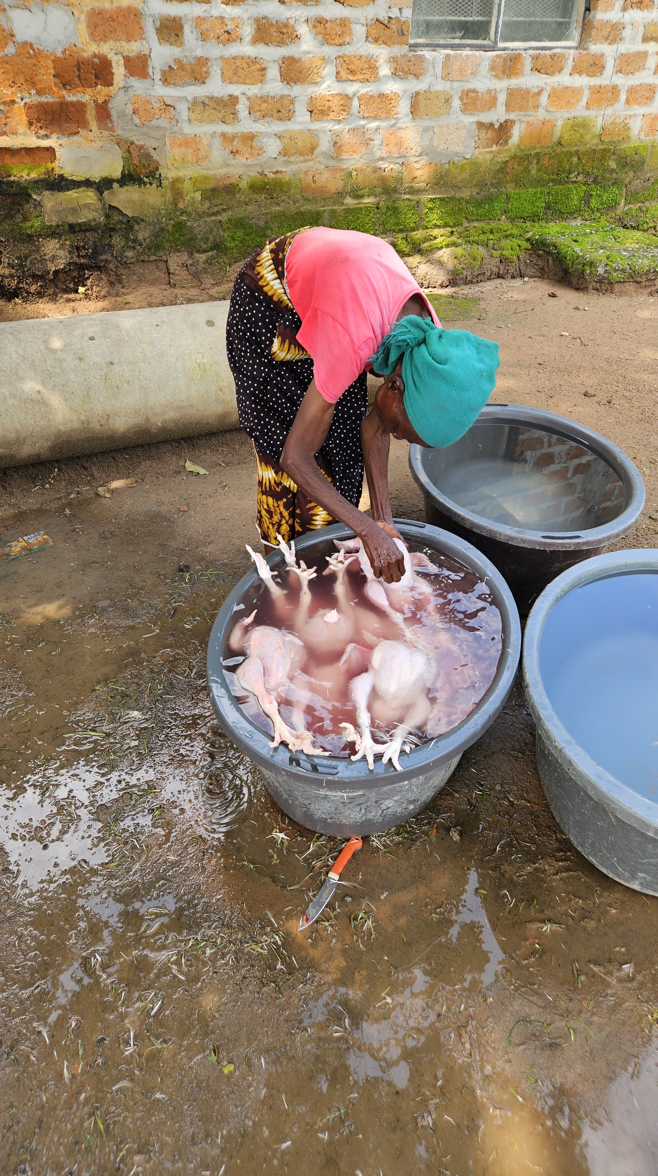 Bananas on our farm | Cameleon | Mushrooms that sometimes make it feel like autumn here too | The Boss | Mrs. Shacholi | more Mushrooms | Meeting on our farm | Meeting with our workers | A large historic slave tree in Ndola | Liters of Mango Juice | My dear mother-in-law who, due to her health, now lives on our farm | Tailoring Isubilo | Our very own Batman | Our new shelter where the chicken slaughterhouse will be located in the future and we’ll meet with the eople for the community | young and old from the neighborhood community are helping with slaughtering the chickens!